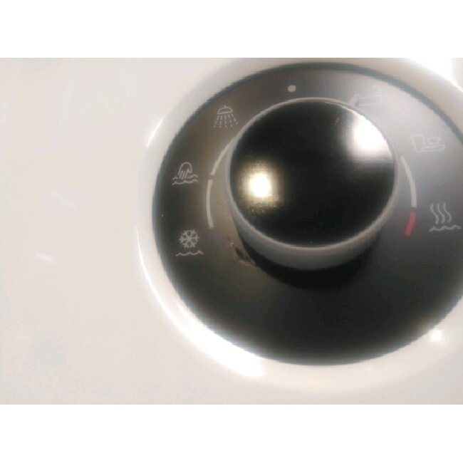 Kleine beschadiging, betreft een lichte schade aan de draaiende knop van het apparaat.