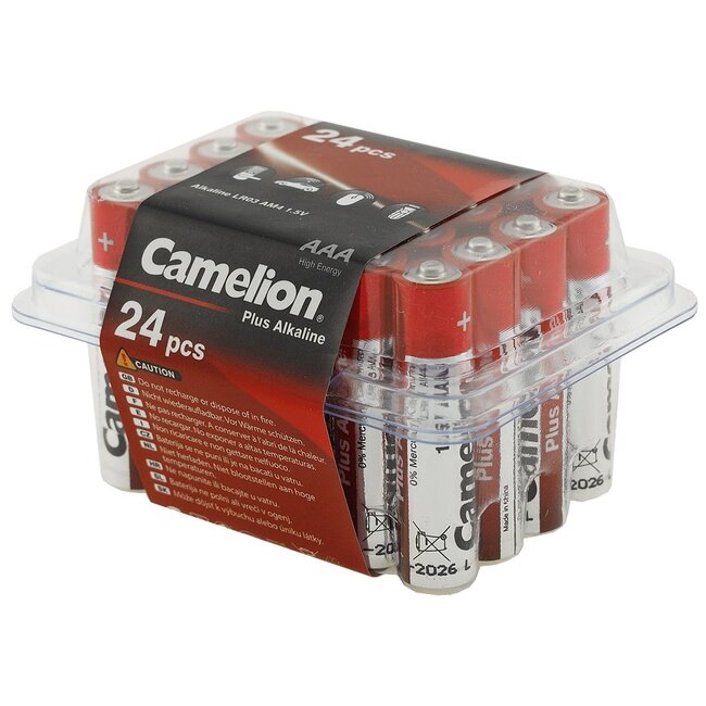Het voordeelpakket 24x Alkaline Plus-technologie van CAMELION met topprestaties. Met 0% cadmium en kwik en bovendien milieuvriendelijk.